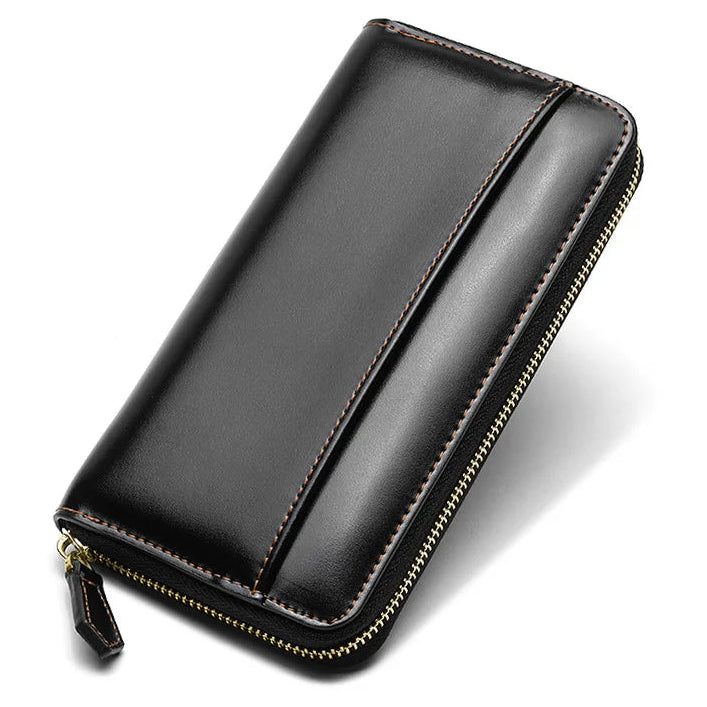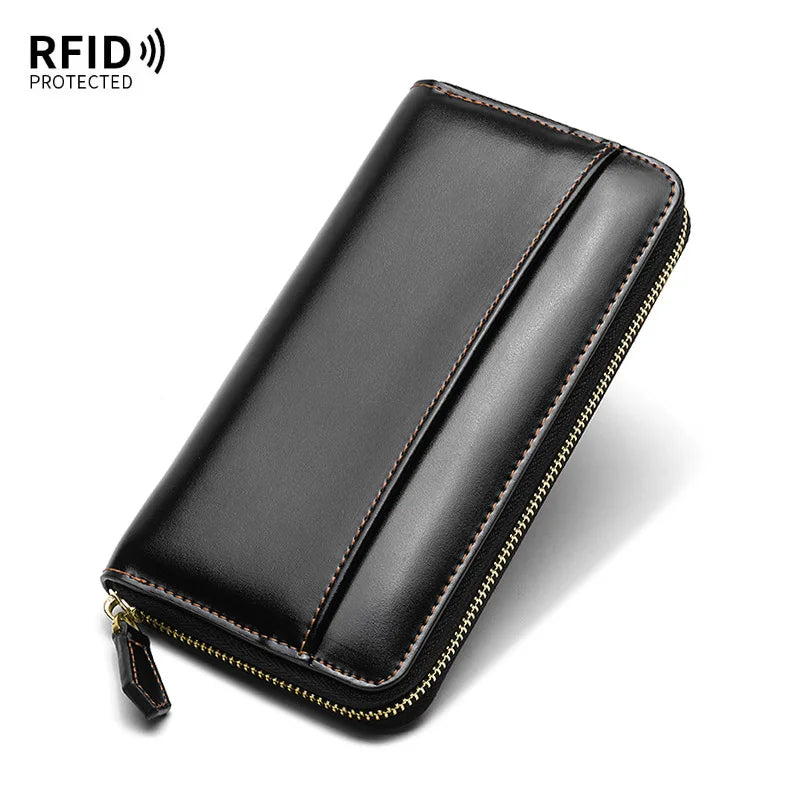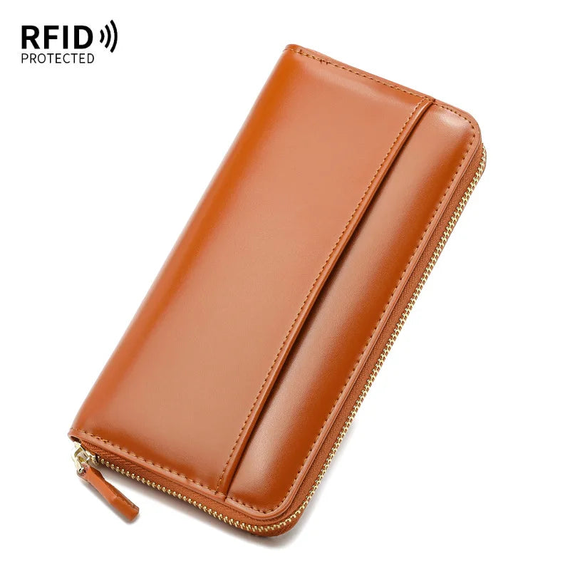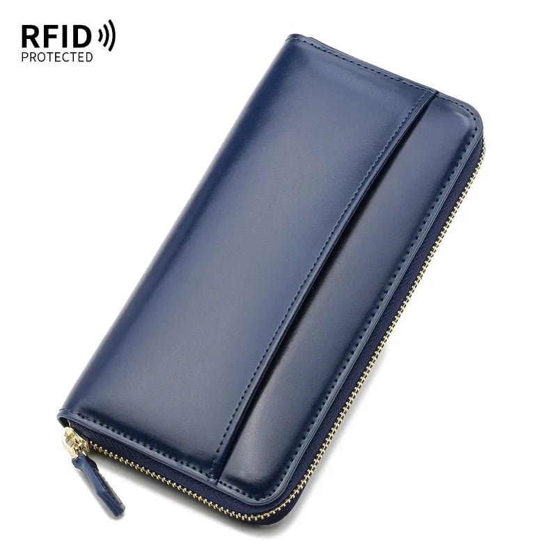 Damen Geldbeutel aus Glattleder im Langformat – Mit Reißverschluss, Kartenfächern und RFID-Schutz