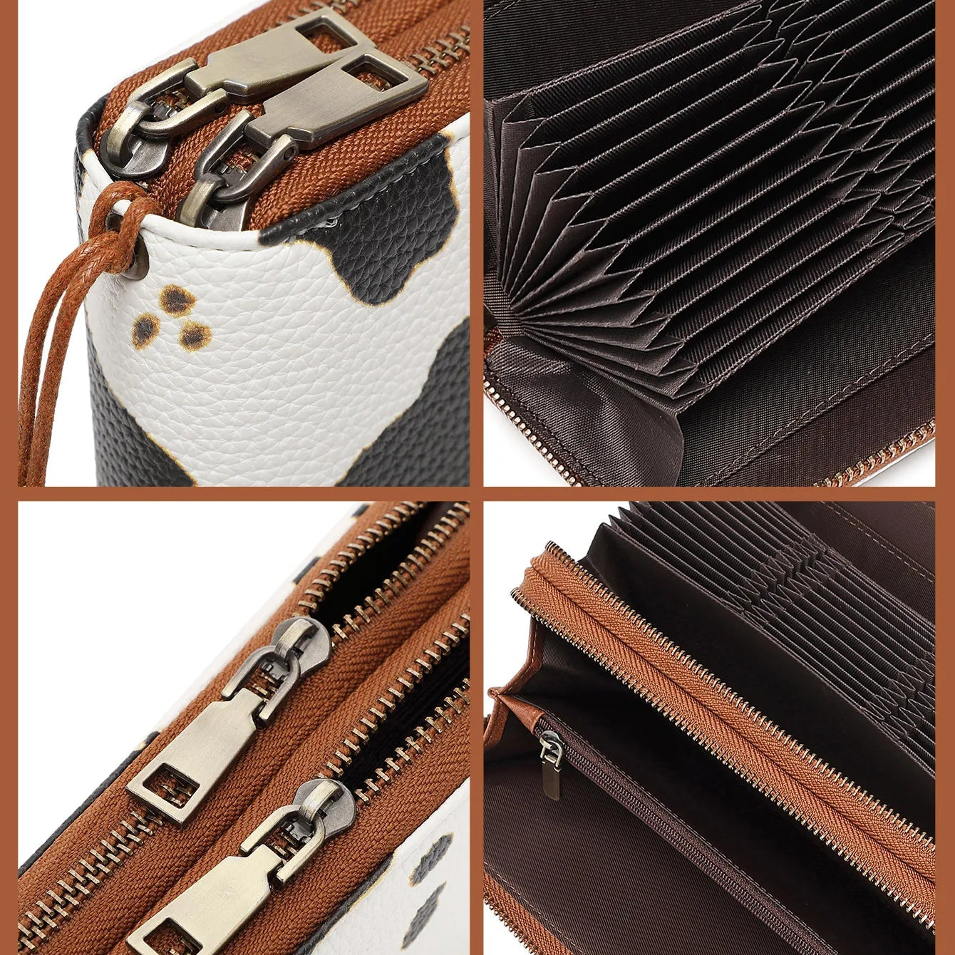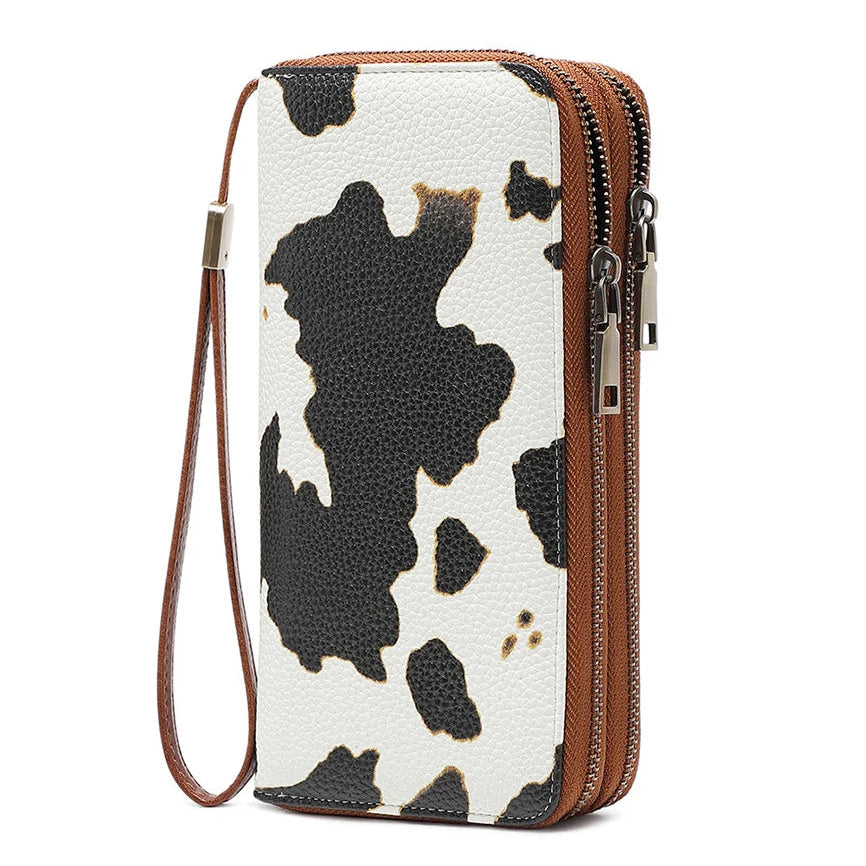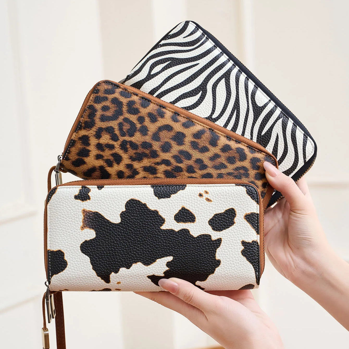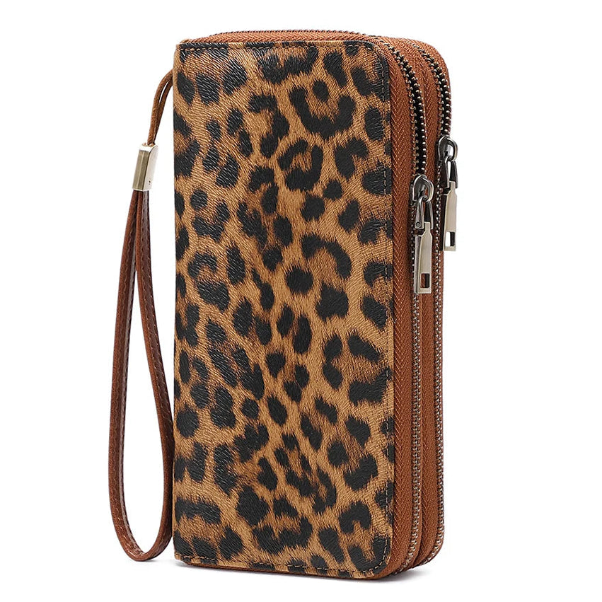 Großer Damen Geldbeutel mit Tiermuster – Doppel-Reißverschluss und viel Stauraum